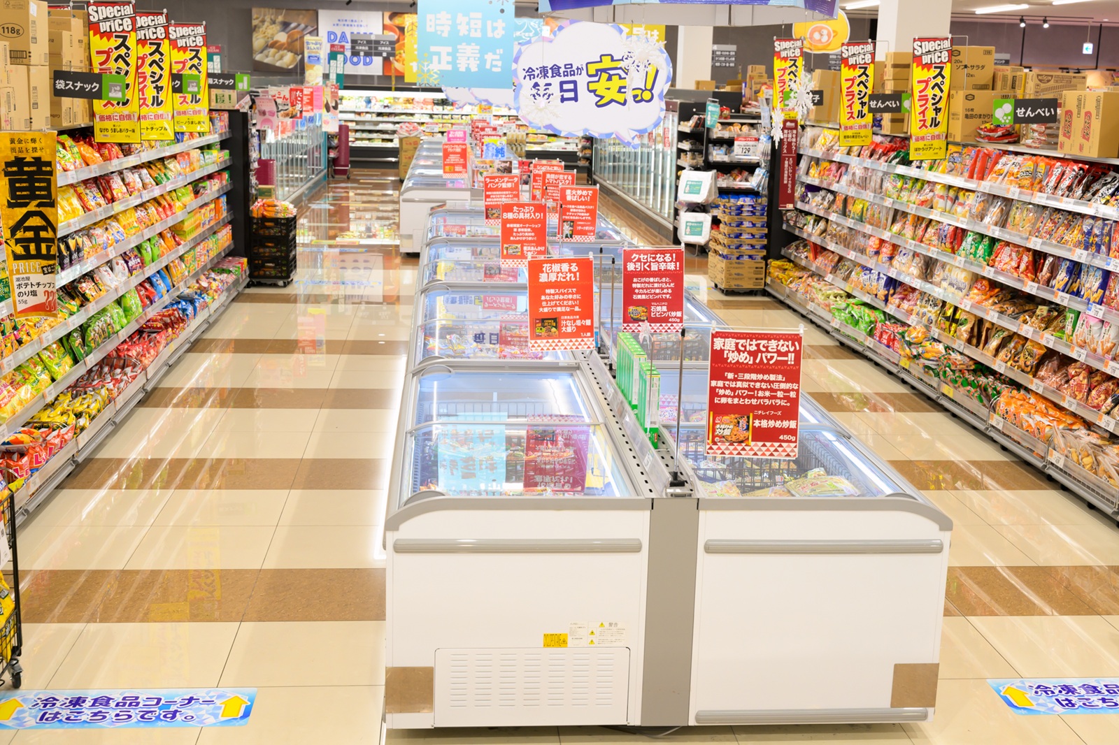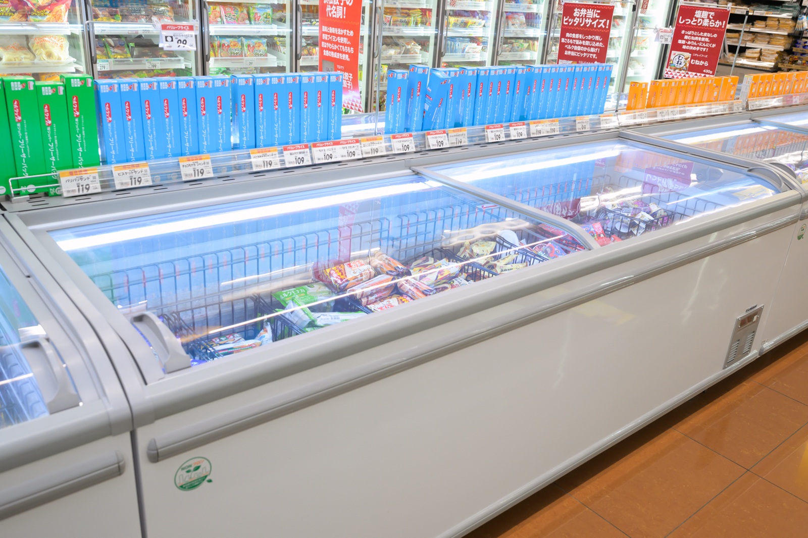 町田野津田店に導入した機器は、冷凍食品とアイスクリーム売場で使用しています。従来のフロンを使用した別置型ショーケースと比較しても冷却性能に遜色はなく、日常の運用においても問題はありません。