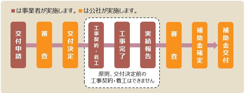 - 交付決定から工事完了までの間に事業の内容について変更の可能性が生じた場合は、「助成事業計画変更申請書」の申請が必要となります。