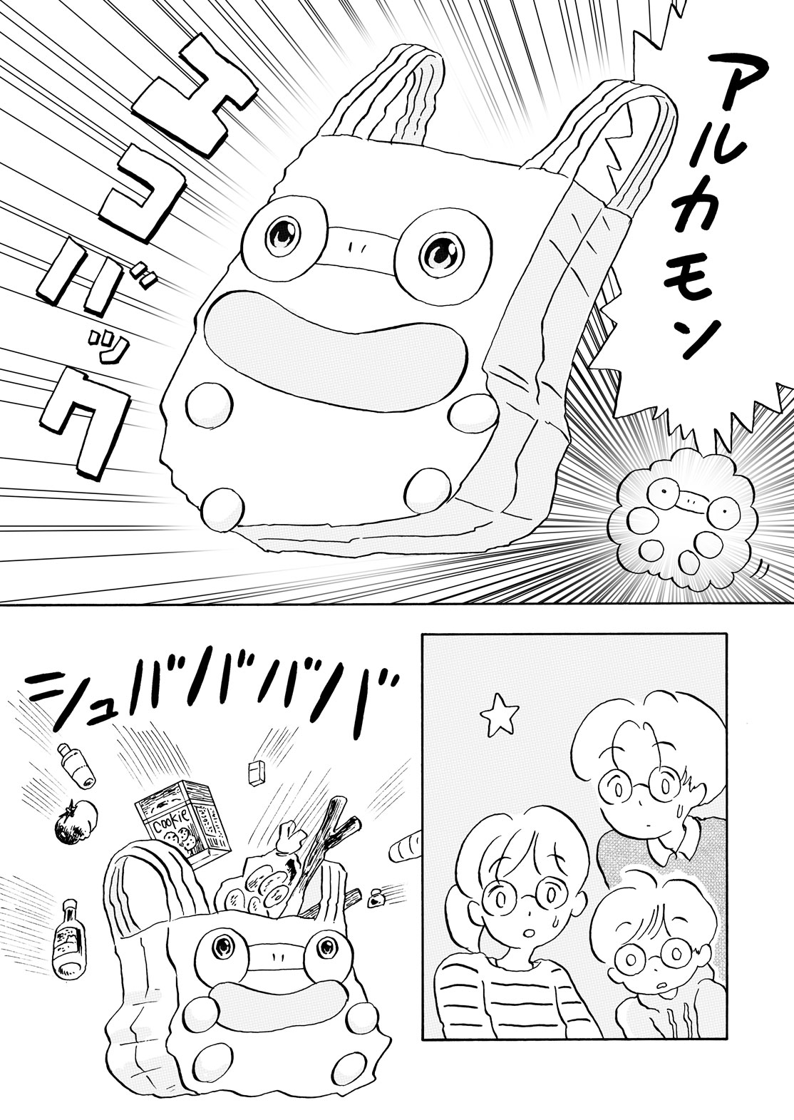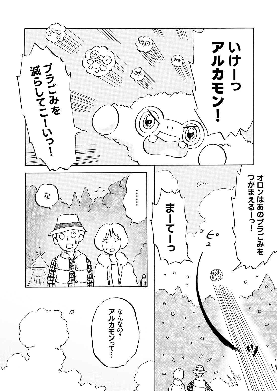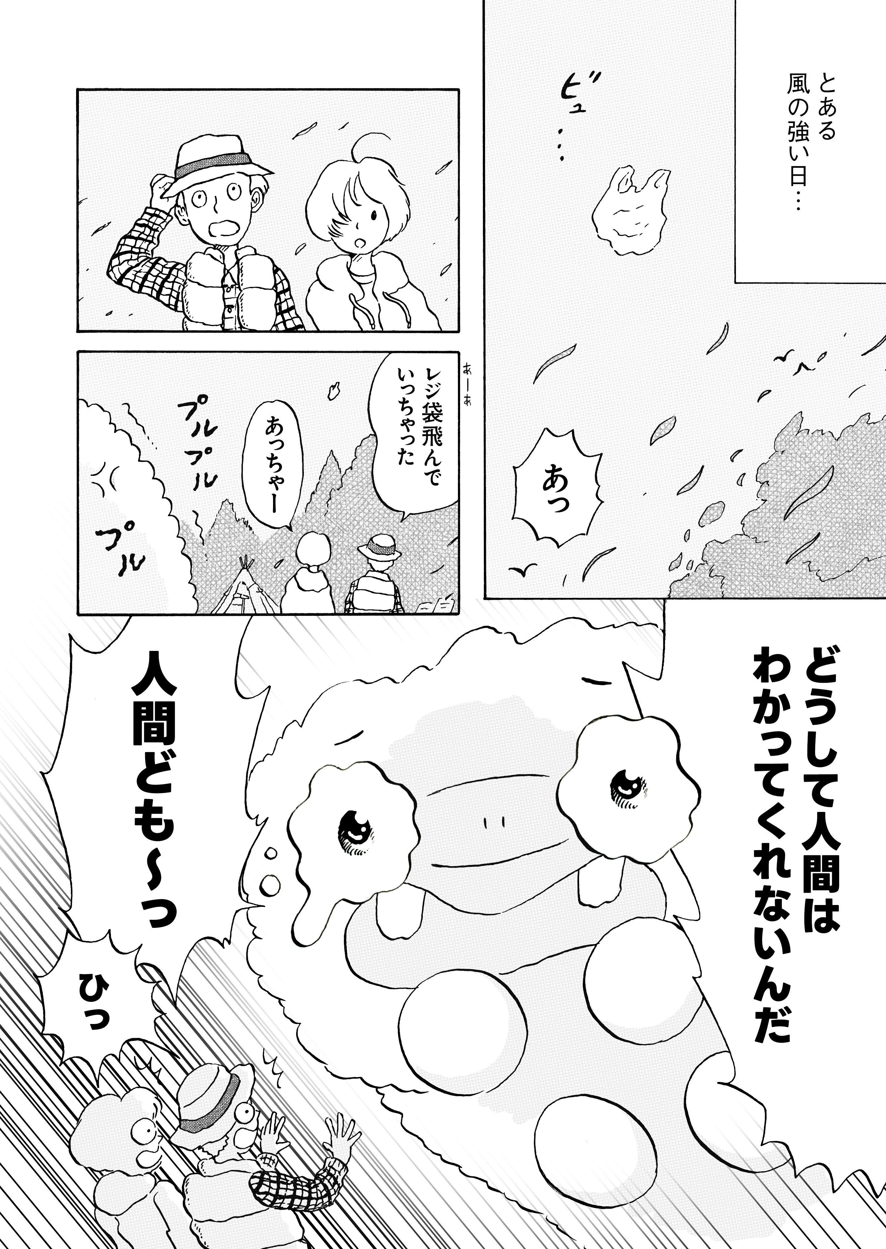 第一弾で登場したオロンは、今ではすっかりマナブ家に馴染んだ様子。ある日、ふいに飛んでいってしまったレジ袋を見かけたオロン。怒って泣いて、でも地球にできることが「アルカモン!」と思わず分裂してしまいました。オロンははたして、何を伝えたいのでしょうか。