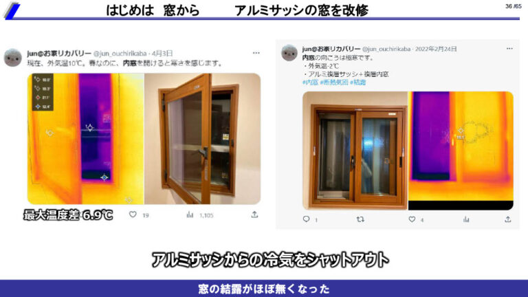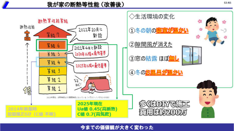 • 北川さんは自分のおウチを断熱・気密性能が上がるように直して改善しました。